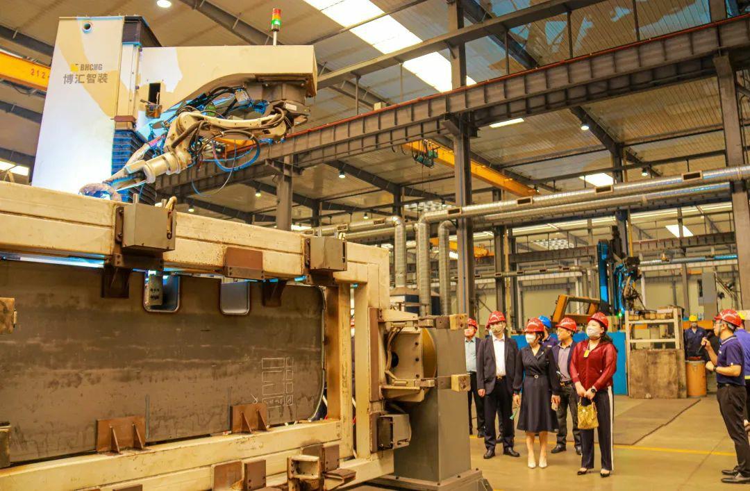 培訓(xùn)學(xué)員抵達(dá)公司后,付總代表公司對(duì)“新時(shí)代江蘇民營(yíng)企業(yè)家培養(yǎng)計(jì)劃”第五次集中培訓(xùn)學(xué)員們的到來表示熱烈地歡迎,并邀請(qǐng)大家觀看我司宣傳片,對(duì)公司所屬行業(yè)及產(chǎn)品進(jìn)行了大致介紹。隨后,學(xué)員們深入我公司東環(huán)廠區(qū)車間現(xiàn)場(chǎng)進(jìn)行觀摩,付總向大家詳細(xì)介紹公司配重焊接機(jī)器人生產(chǎn)線、水性漆自動(dòng)噴涂生產(chǎn)線的生產(chǎn)工藝、生產(chǎn)規(guī)模、產(chǎn)品銷售等情況。